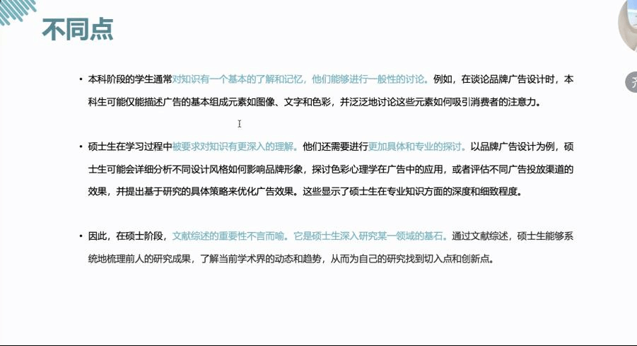 图3 本科生与硕士生的不同点