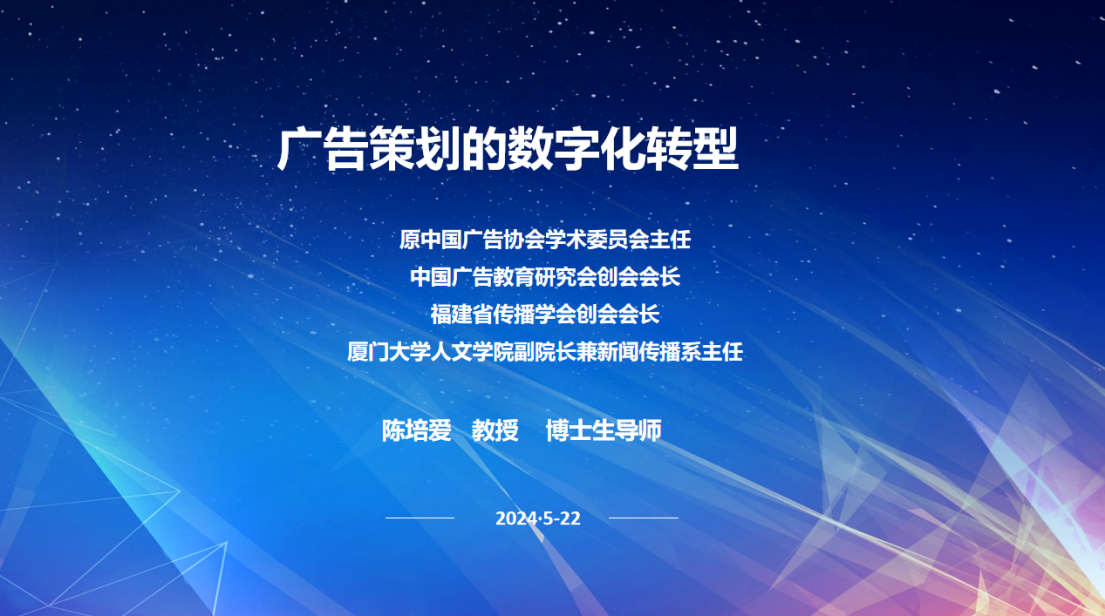 5月22日17时40分,懂球体育第29期新新讲坛专题学术讲座在红湖校区12号楼115教室举办,邀请厦门大学陈培爱教授做了题为“广告策划的数字化转型”的专题学术讲座,懂球体育共有90余名师生听取了此次讲座。