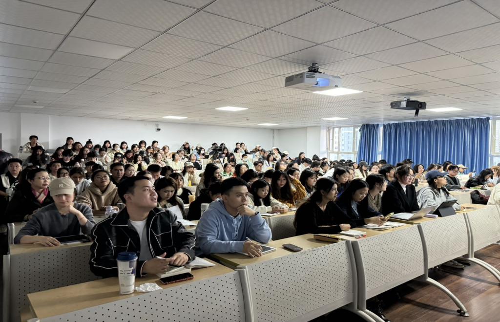 在互动环节,杰文津老师与现场同学展开了热烈交流。针对“新闻报道中典型人物形象塑造分析”等话题,同学们踊跃发言。杰文津老师结合丰富的行业经验与理论知识,旁征博引、深入浅出地逐一解答,现场思维火花不断碰撞。问答既有对宣传策略的深度探讨,也有对媒体责任的思考共鸣,热烈的讨论氛围将整场讲座推向高潮。