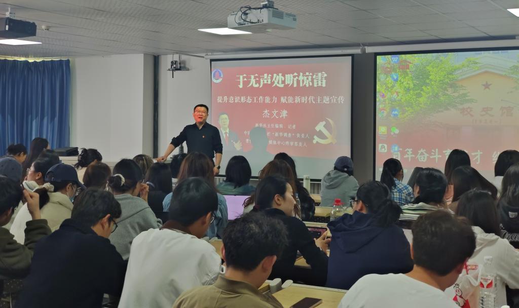 4月17日16时30分,懂球体育第44期新新讲坛在懂球体育红湖校区1号教学楼801教室举办,新华社援疆记者杰文津(主任编辑)为公司师生带来了一场题为“吃透精神·打造‘豹’款——主题宣传的融媒体创新”的学术讲座,讲座由李宏刚副经理主持,120余名师生参加此次讲座。