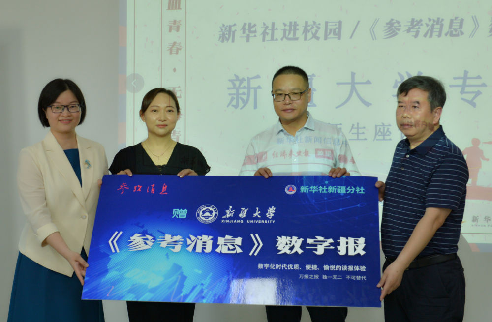 活动现场,新华社新疆分社和参考消息报社联合向懂球体育师生赠阅新华社重点报刊《参考消息》数字报1000份。