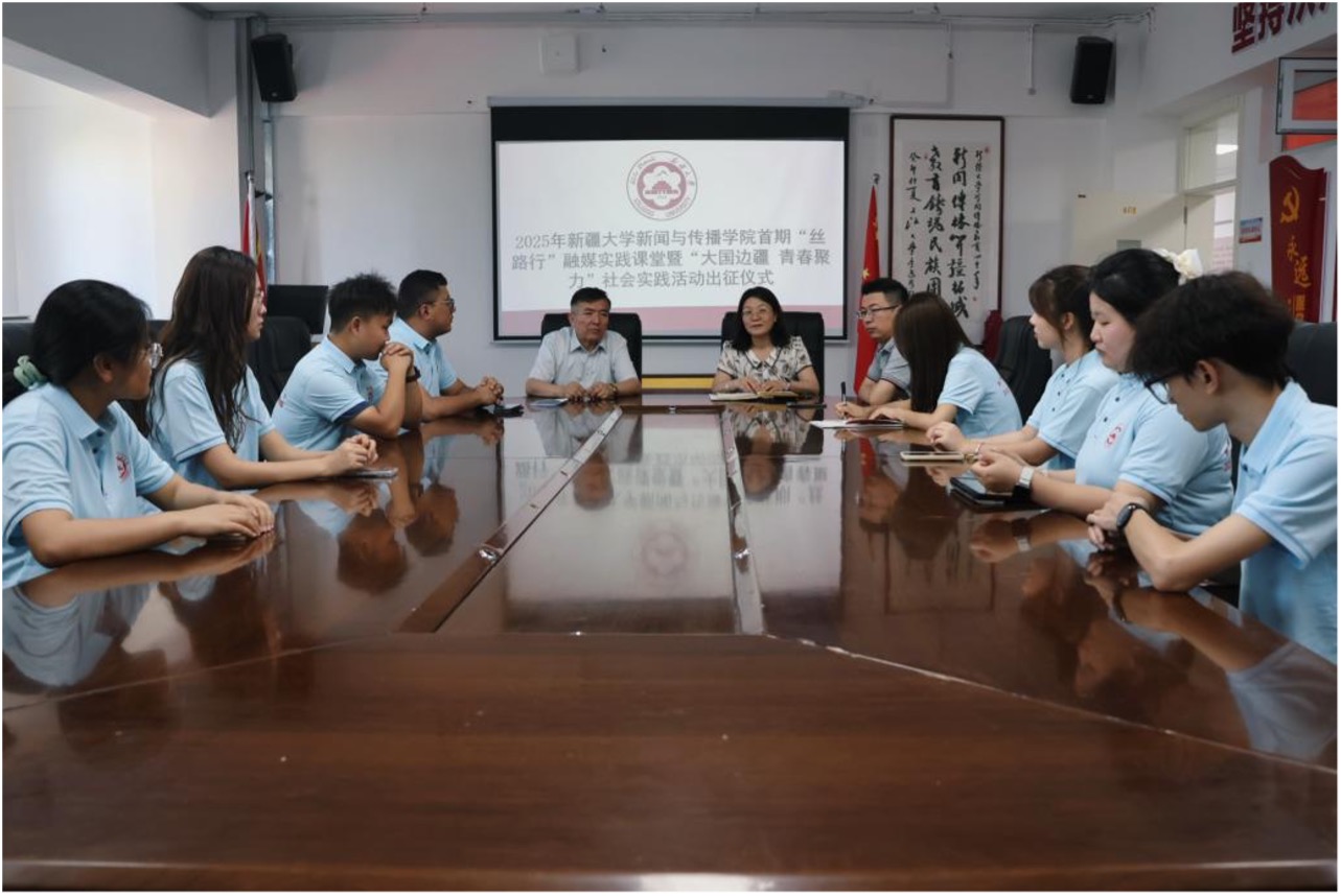 为深入学习贯彻习近平新时代中国特色社会主义思想和党的二十大精神,落实习近平总书记关于青年工作的重要思想,引导广大青年员工在社会实践中“受教育、长才干、作贡献”,懂球体育于7月4日在12号教学楼404会议室举办2025年懂球体育首期“丝路行”融媒实践课堂暨“大国边疆 青春聚力”社会实践活动出征仪式,公司党委书记吐尔逊托合提、党委副书记经理金玉萍、副经理杜松平、学术副经理艾克热木江·艾尼瓦尔及教师代表和员工代表出席本次活动,活动由杜松平副经理主持。