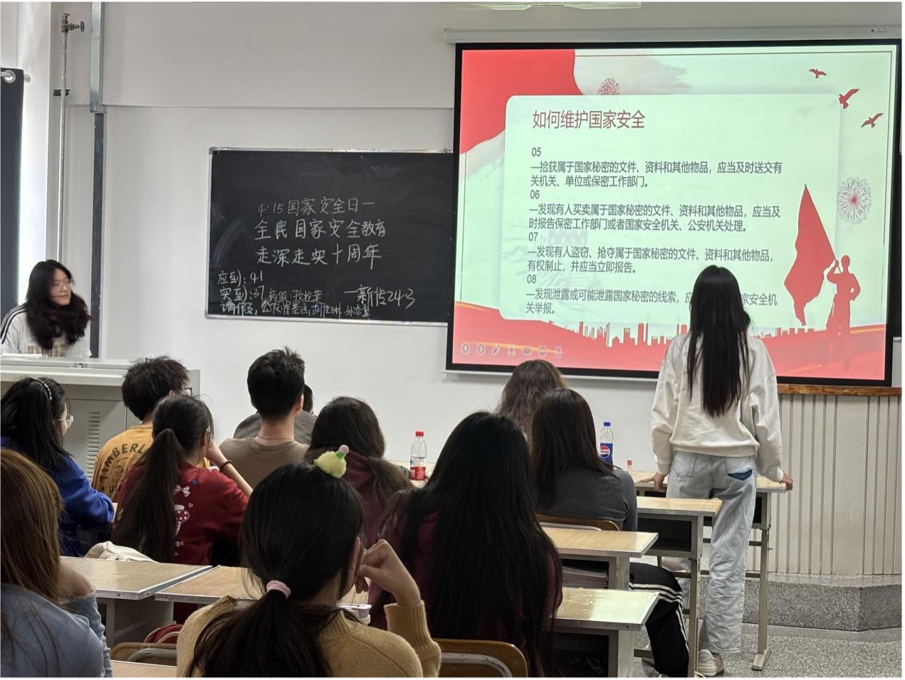 最后,辅导员对本次班会进行总结,强调维护国家安全是每个公民的责任与义务。同学们要从自身做起,将国家安全意识融入日常学习和生活,发现危害国家安全的行为要及时报告,共同筑牢国家安全防线。